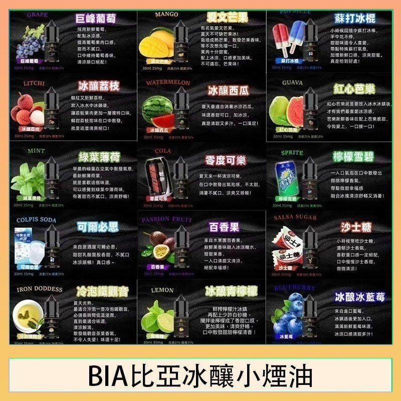 紅心芭樂, 檸檬雪碧, 可爾必思, 蘇打冰棍, 巨峰葡萄, 愛文芒果, 百香果, 冷泡鐵觀音, 荔枝, 沙士, 可樂, 西瓜, 青檸檬, 藍莓, 薄荷