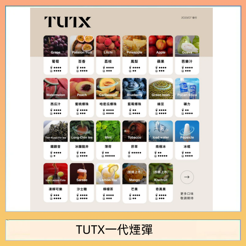 TUTX煙彈以SP2S口味為原型生產,專為電子煙愛好者打造,完美還原經典口味,同時研發獨特風味,為您提供極致的吸煙體驗。